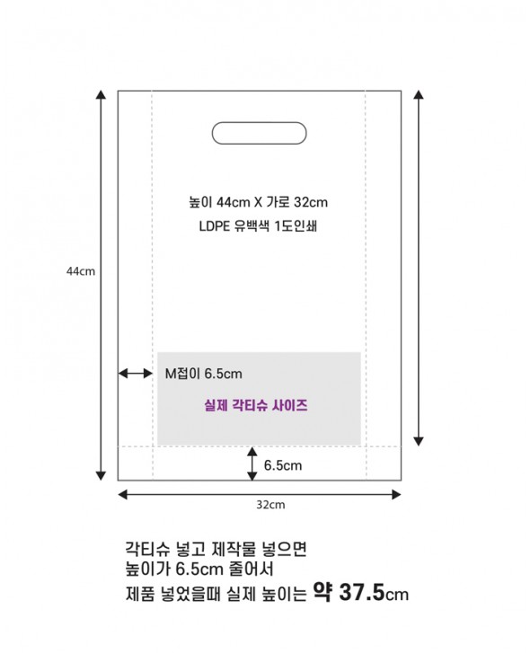 ※ 종이쇼핑백사이즈 : 가로 32cm x 세로 44cm x 양쪽 폭 6.5cm 씩