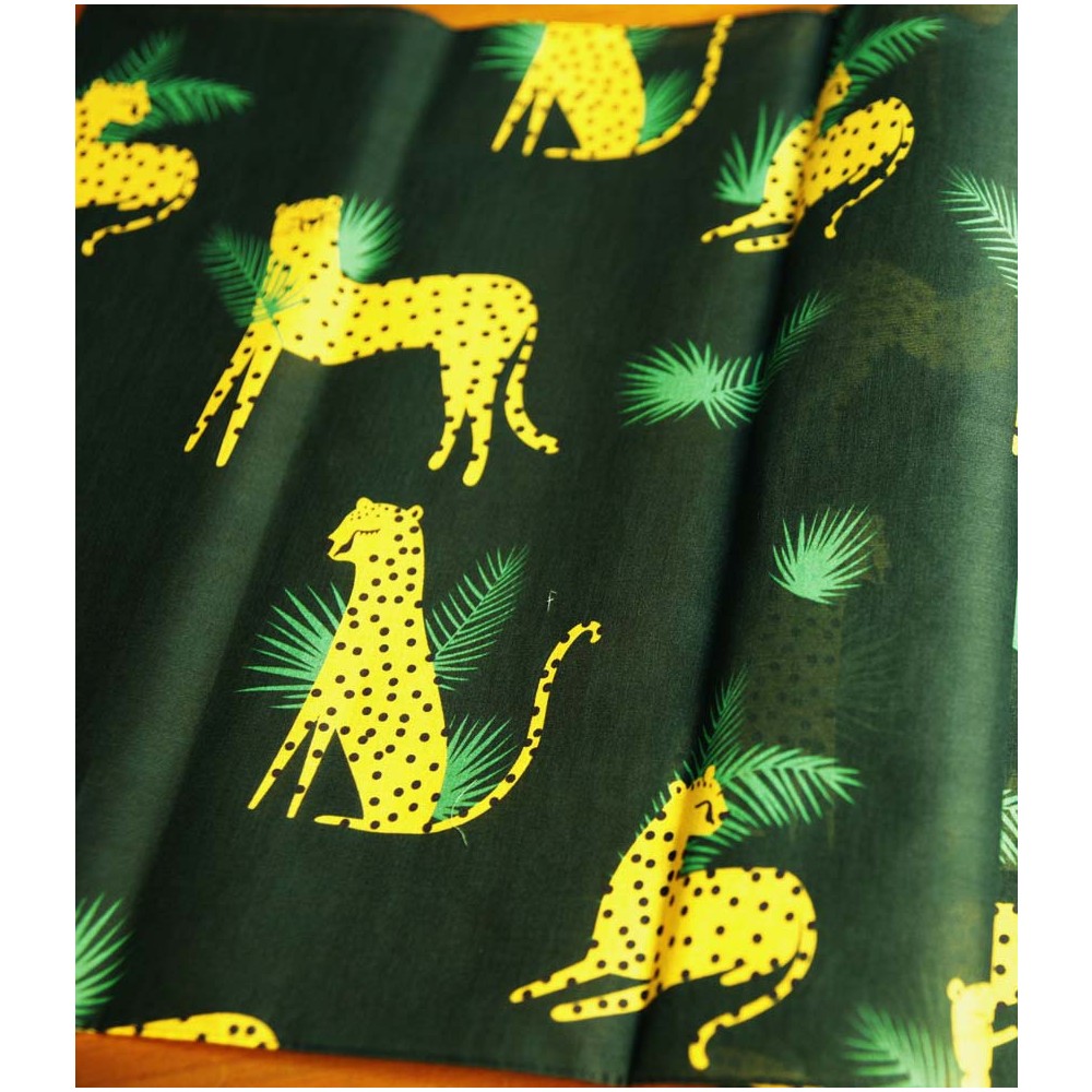 딥 그린 배경에 황색 치타의 땡땡이, 에머랄드 컬러의 풀잎을 조화롭게 사용해 편안하고 고급스러운 느낌의 면 수건을 완성했습니다.